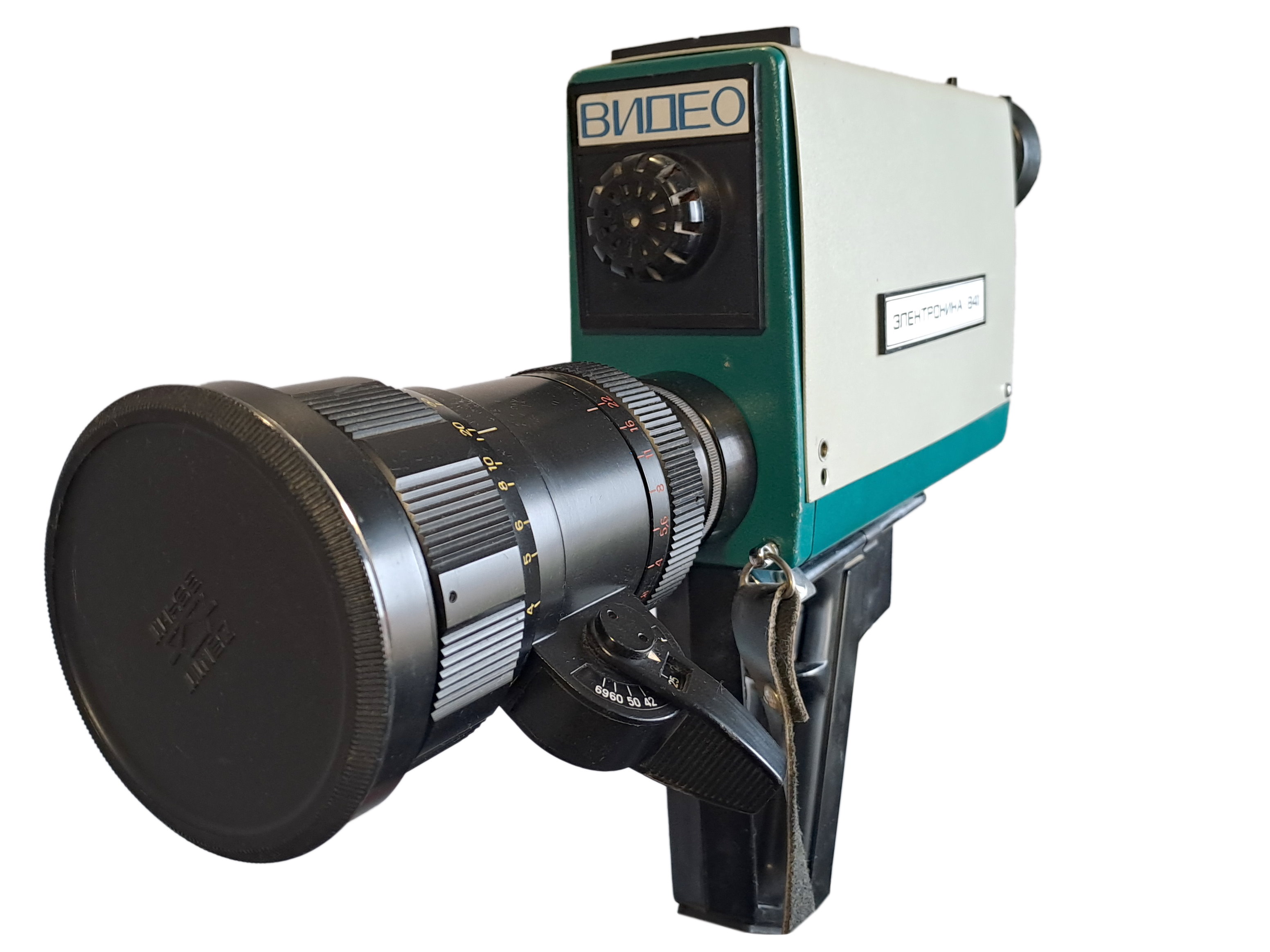 Самая малогабаритная советская черно-белая видеокамера. Имеет такие размеры, поскольку синхрогенератор и часть электроники вынесена в отдельный блок, который предполагается носить в сумочке из кожзама.