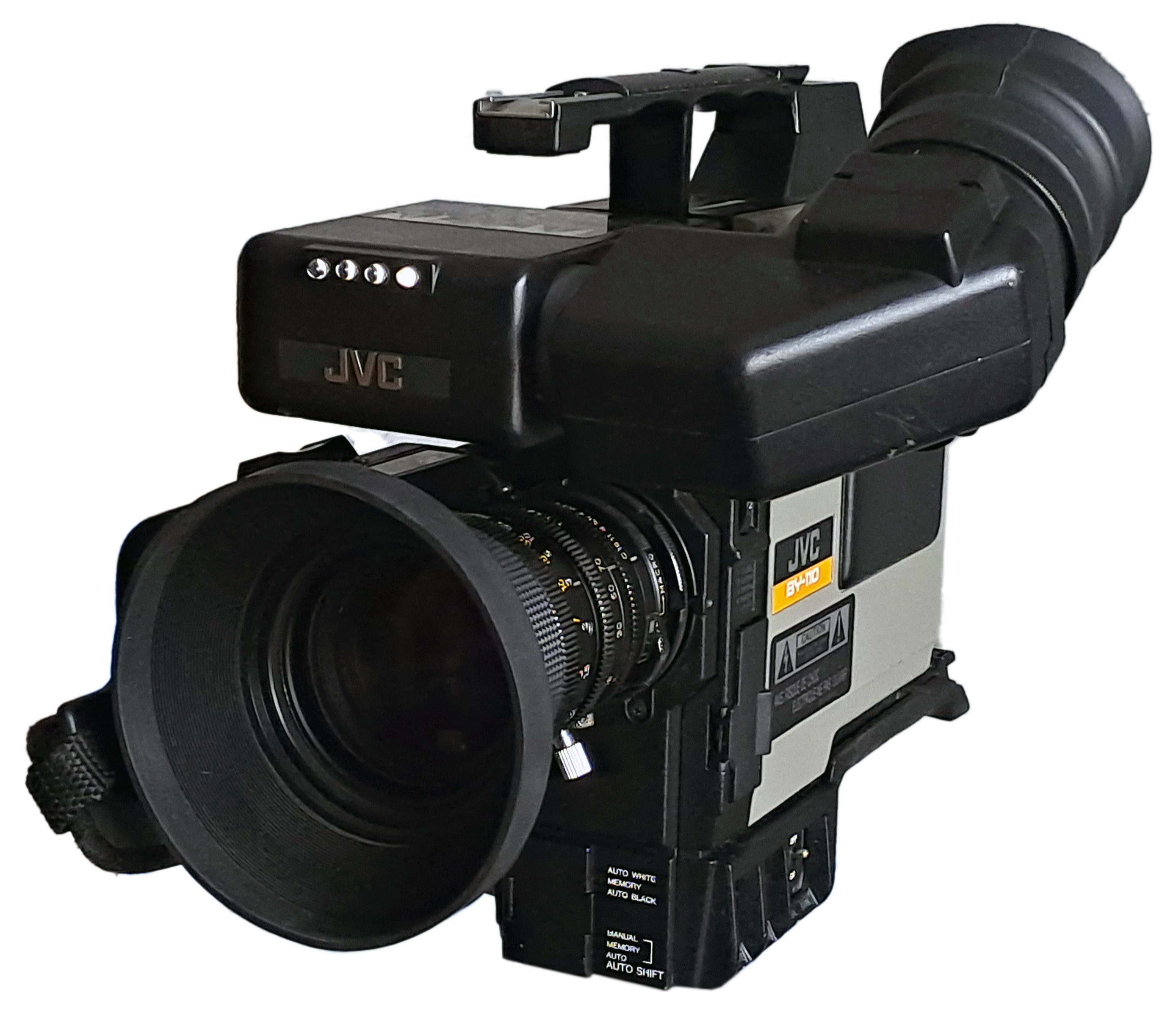 Телевизионная камера JVC BY-110 является единственной трехтрубочной камерой в моей коллекции. Намного меньше "Репортера", снимает на три трубки Saticon. Имеет автоматические настройки, генератор цветных полос, переключаемые оптические фильтры.