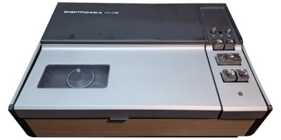 Первый серийный малогабаритный видеомагнитофон СССР, который использует наклонно-строчную запись. Серийный номер 0024. Пишет на дюймовую видеоленту. Из-за высокой полосы (до 5МГц), способен писать цветное видео в системе SECAM.