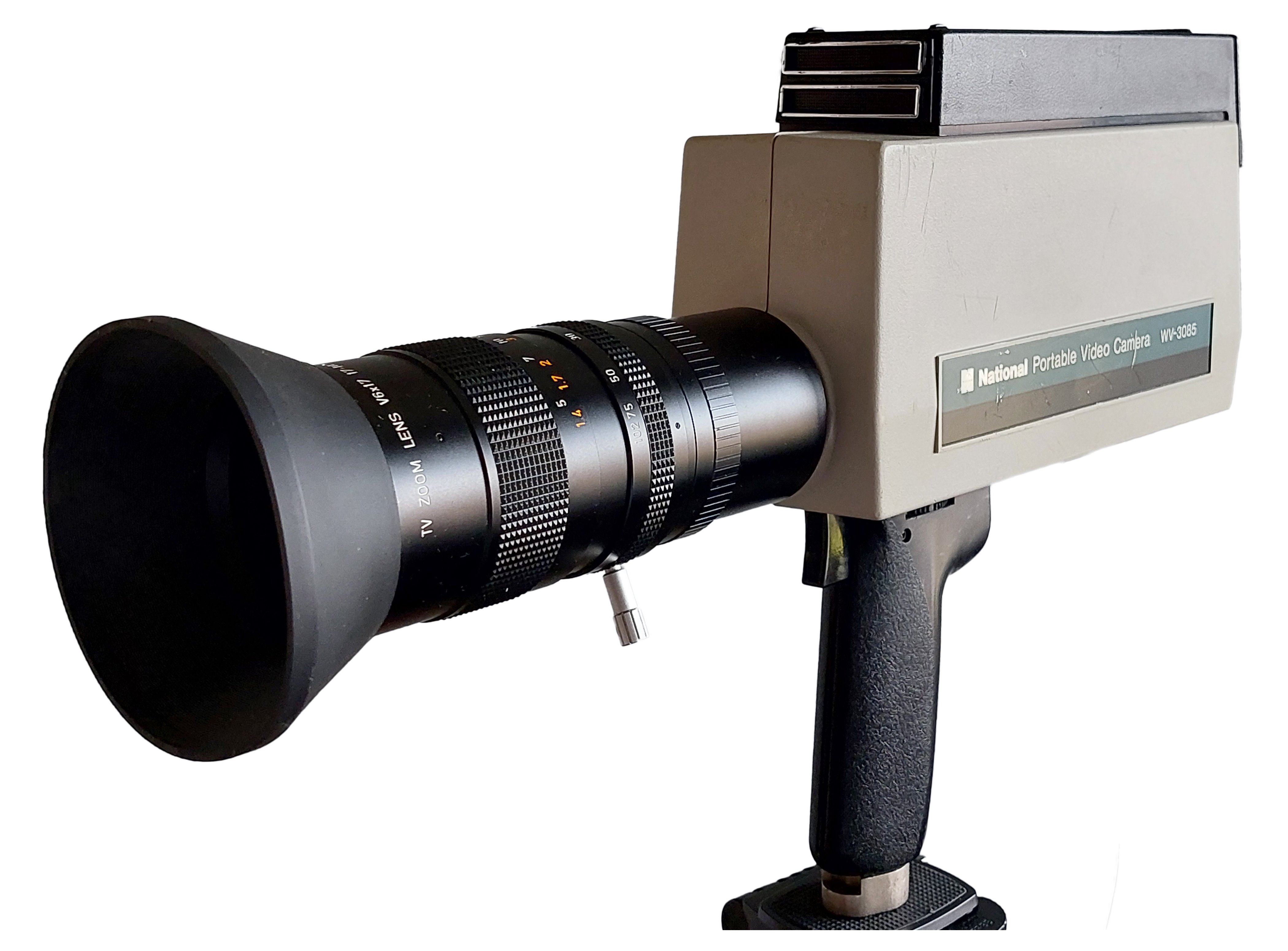Черно-белая видеокамера фирмы National (Panasonic) является комплектом к катушечному видеомагнитофону Panasonic NV-3085. Камера 1974 года, имеет доработки, сделанные в СССР.