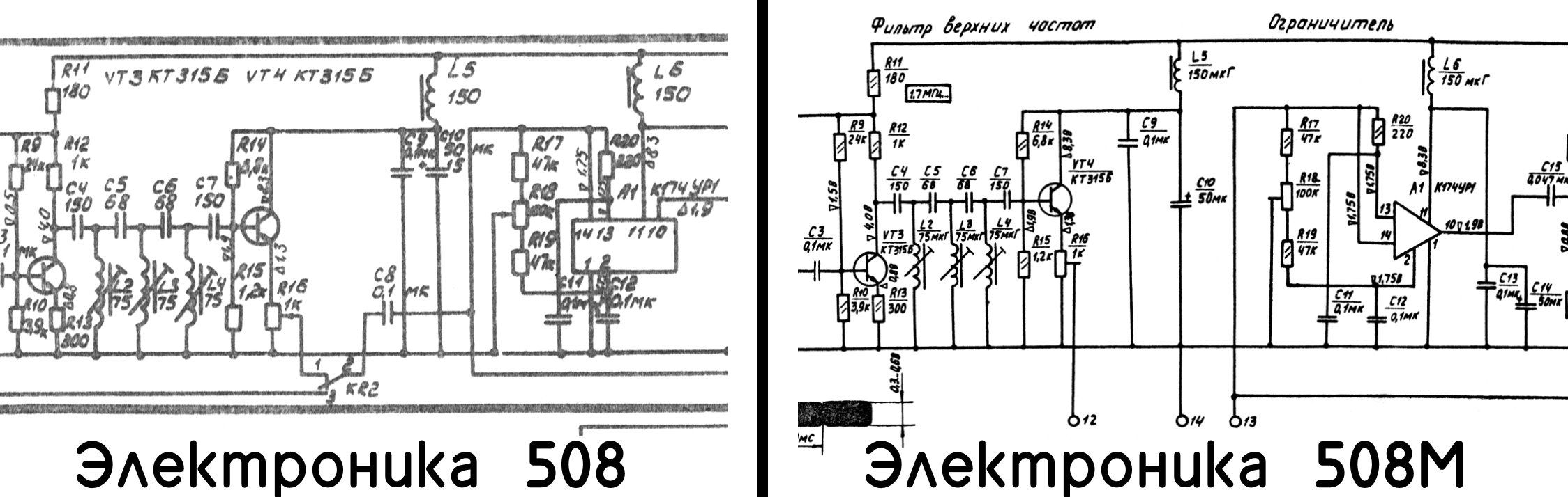 Для установки в 508М в нём уже предусмотрены точки для подключения компенсатора выпадений. Вход компенсатора — точка 12, выход компенсатора — точка 13. На серийных аппаратах там стоит конденсатор, его нужно удалить.