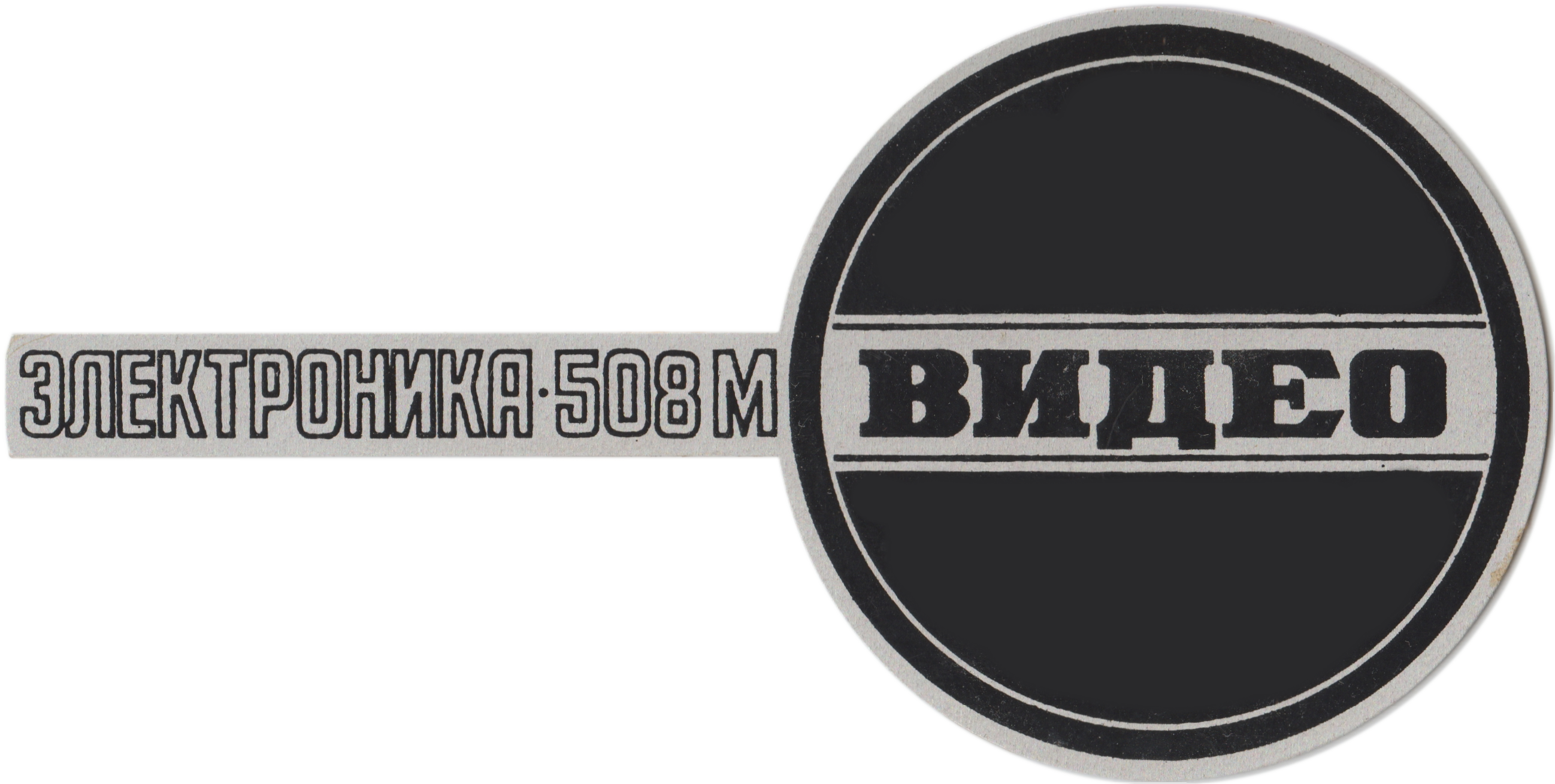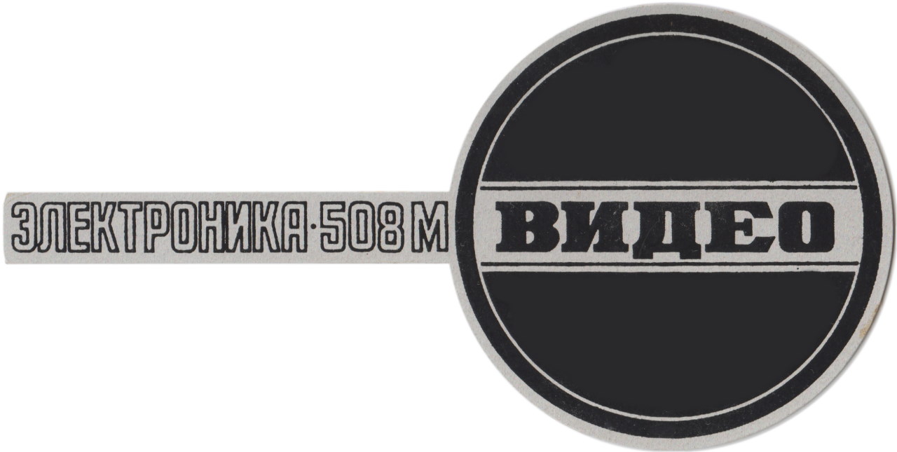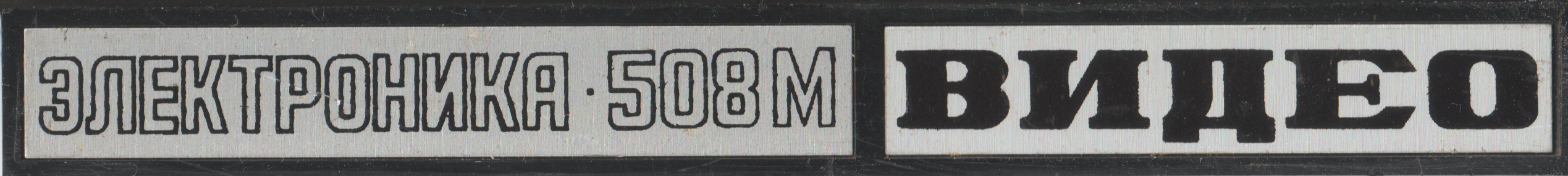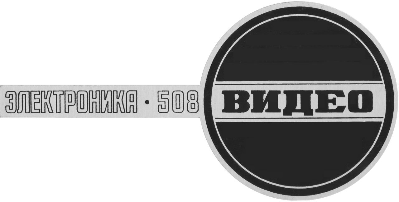 Данный шильдик устанавливается спереди видеомагнитофона Электроника 508М. Однако, аналогичные шильдики также были и у Электроники 502 и 508. Сам шильдик пластмассовый, но состоит из двух надписей: модель видеомагнитофона и слово "видео".
