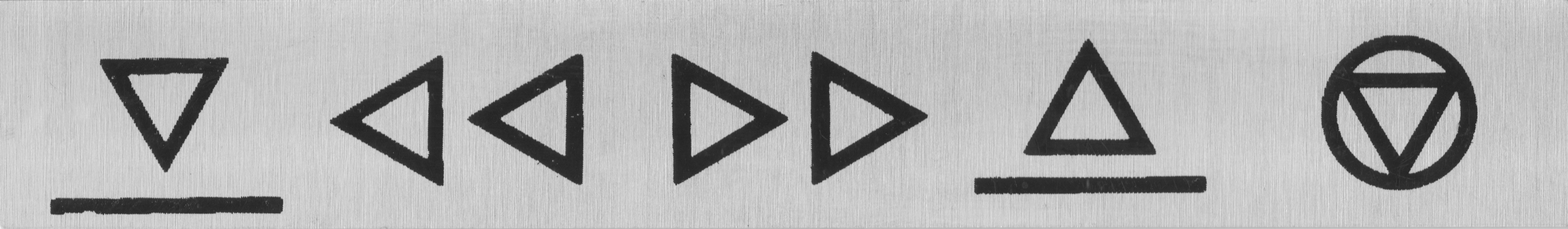 Шильдик, который устанавливался на видеомагнитофоны Электроника 502, 590, 508 на панель над клавишами управления режимами.