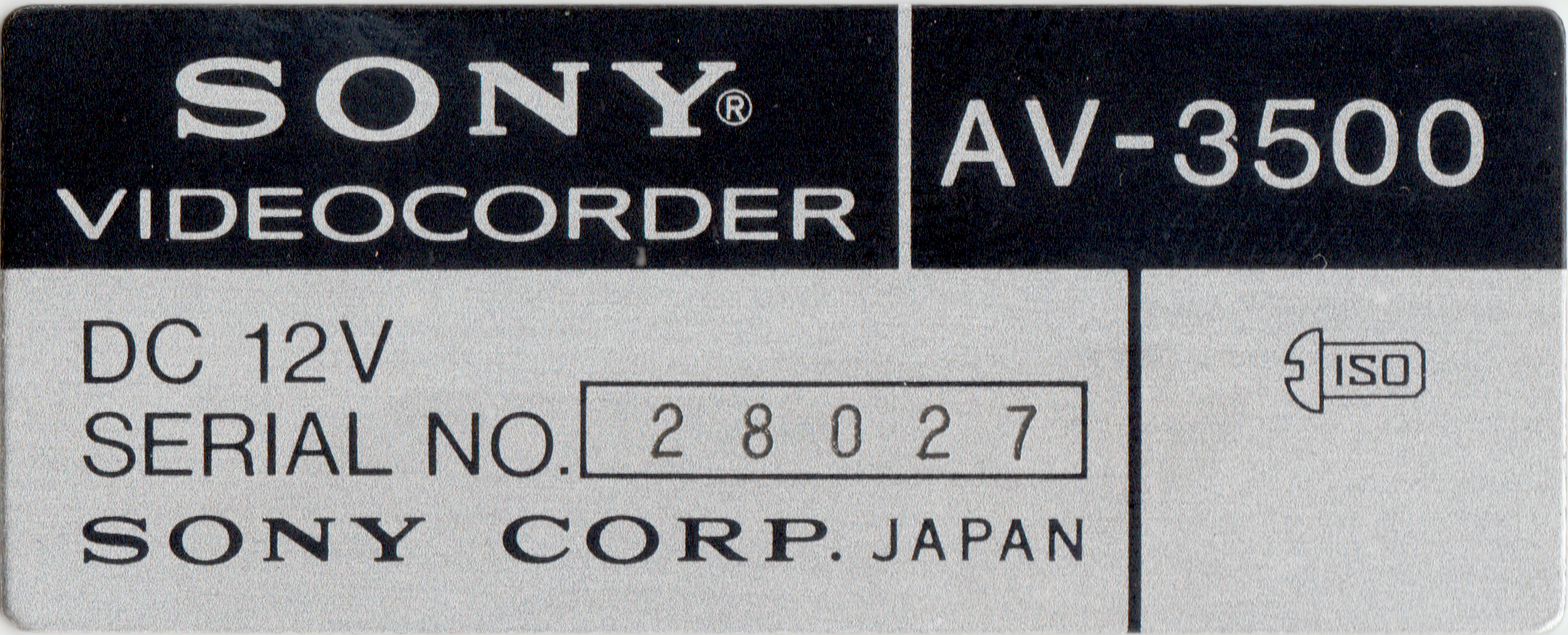 Шильдики для видеомагнитофона Sony AV-3500. Большой шильдик устанавливается на внутренней стороне крышки, маленький шильдик — снизу, около крышки батарейного отсека.