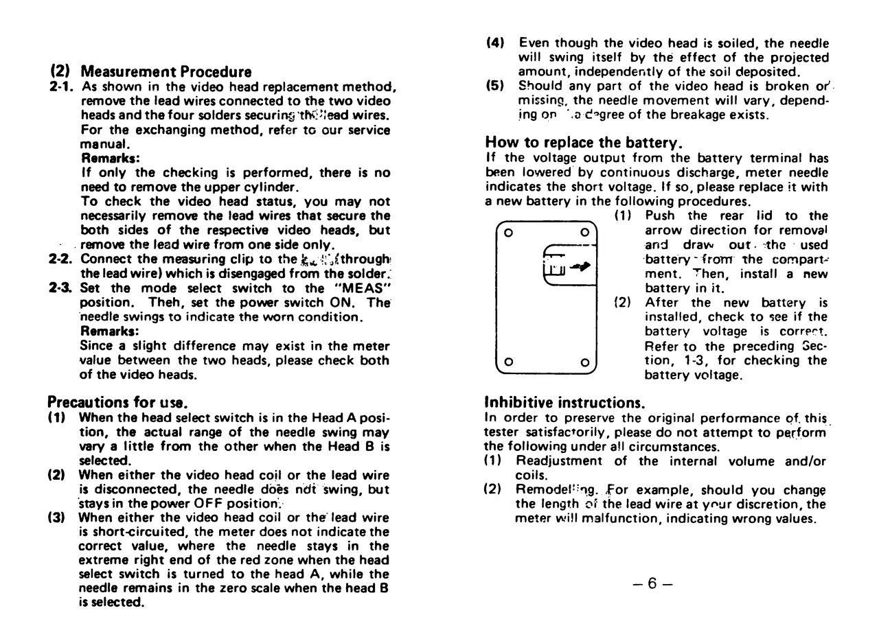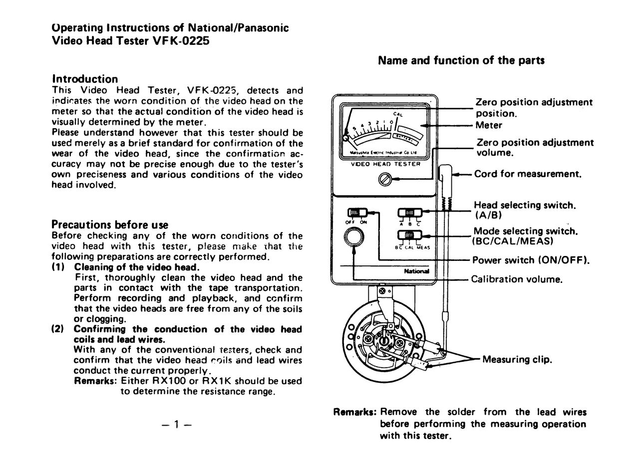 (165Kb) National-Panasonic Video Head Tester VFK-0225. Operating instructions.