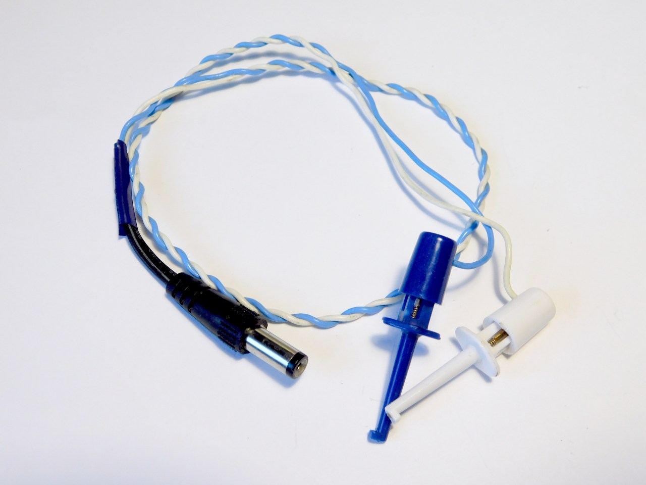 Родных щупов не сохранилось, однако случайно был обнаружен самодельный кабель, который идеально подошел к прибору. "Захваты" для подключения к подводам видеоголовки использованы аналогичные, как и были в оригинальном исполнении.