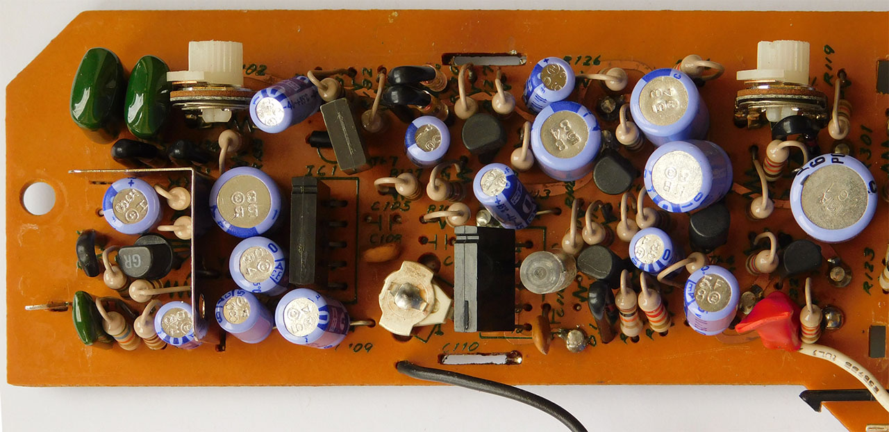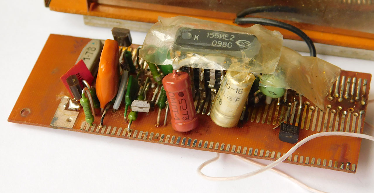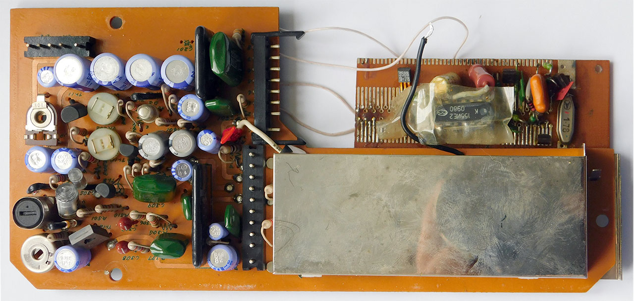 Печатные платы с электроникой не откидываются, но это никак не уменьшает удобства в ремонте: все регуляторы в доступности, а сами печатные платы подключаются с помощью разъемов. Печатных плат всего две. Первая плата содержит блок питания камеры и схему видоискателя, а вторая плата содержит видеоусилитель и усилители разверток. Соответственно плата разверток безопасна для случайного прикосновения, а на плате блока питания имеются высокие напряжения (может "покусать").