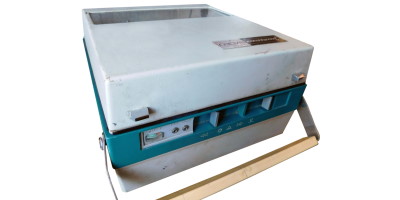 Советский полукадровый видеомагнитофон производства НПО "Позитрон". Черно-белый, имеет цельнометаллический корпус.