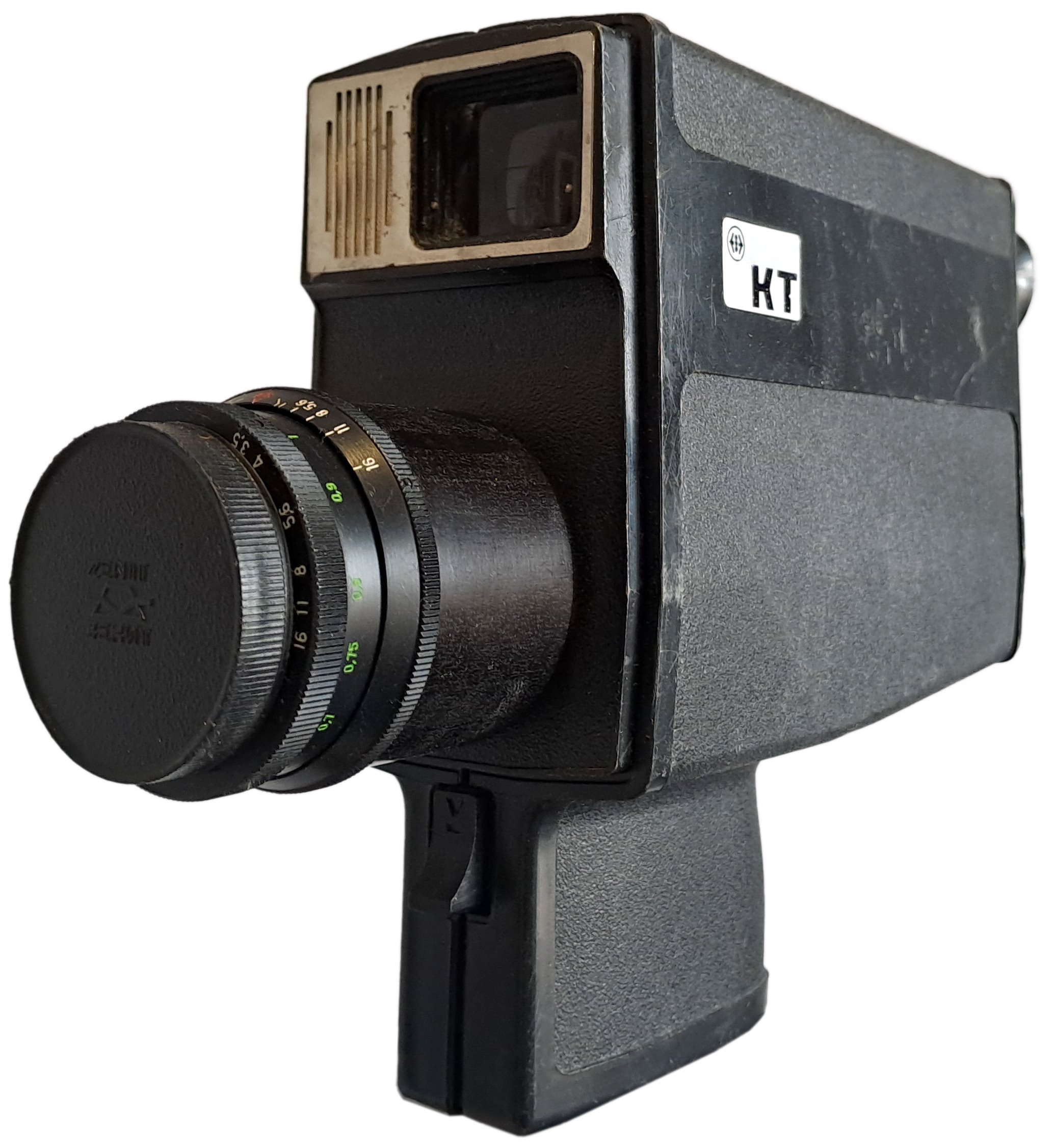 Самая малогабаритная советская черно-белая видеокамера. Имеет такие размеры, поскольку синхрогенератор и часть электроники вынесена в отдельный блок, который предполагается носить в сумочке из кожзама.