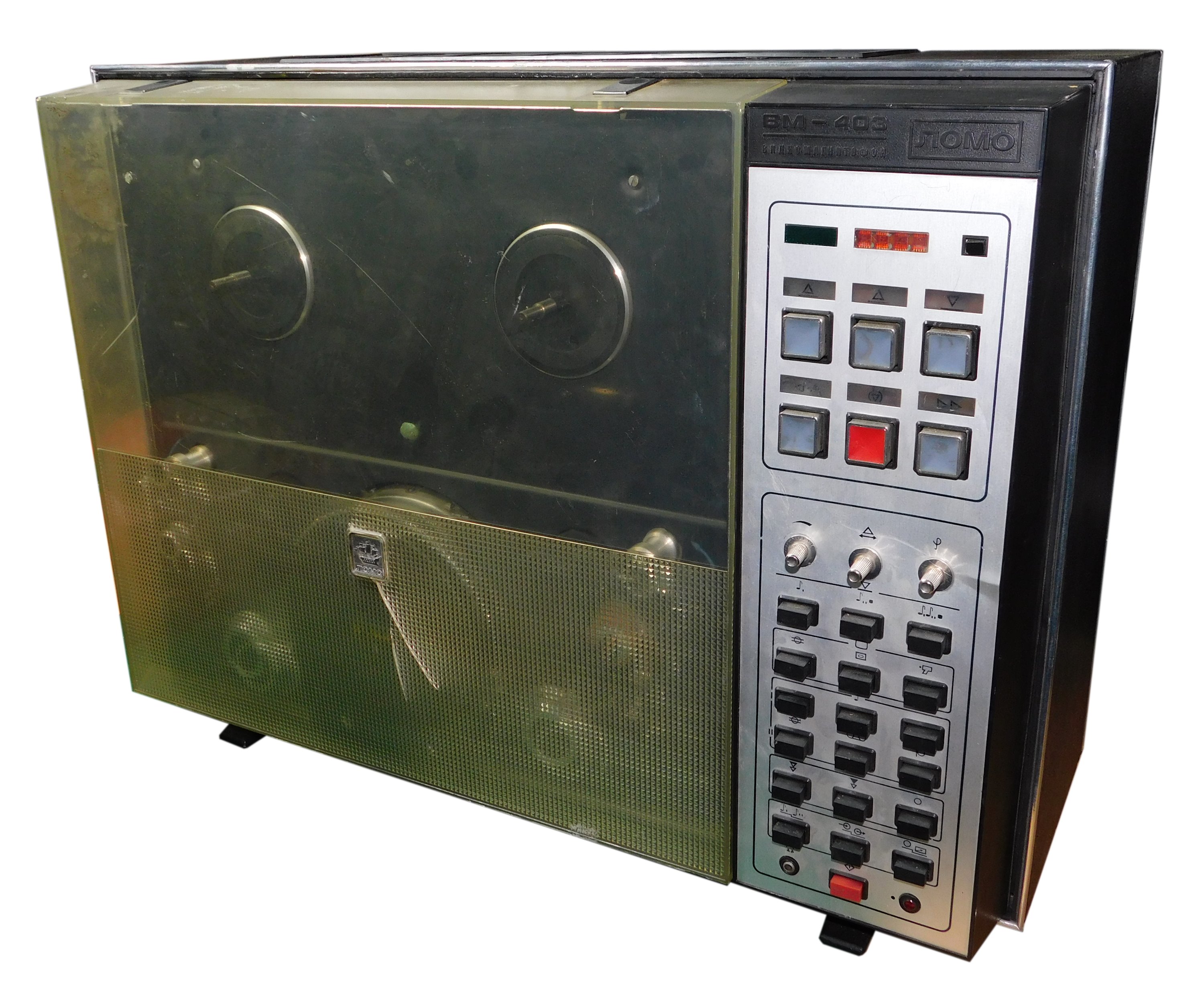 Первый серийный малогабаритный видеомагнитофон СССР, который использует наклонно-строчную запись. Серийный номер 0024. Пишет на дюймовую видеоленту. Из-за высокой полосы (до 5МГц), способен писать цветное видео в системе SECAM.