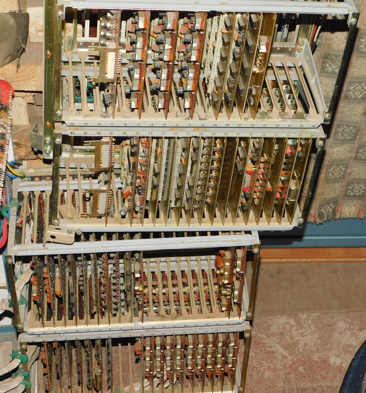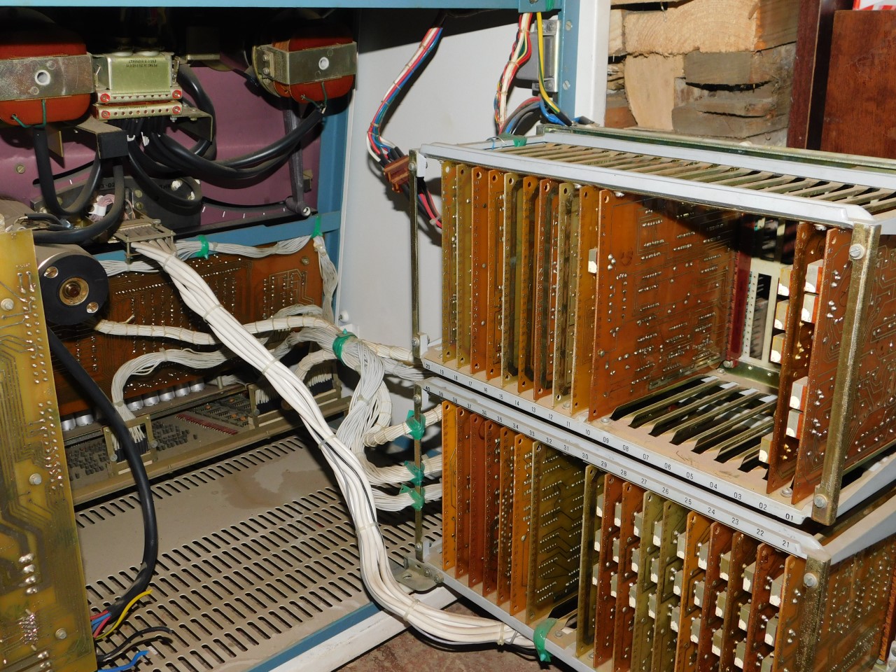 Вся электроника (за исключением клавиатуры) реализована в виде корзины со слотовыми разъемами, в которые вставляются так называемые ТЭЗ'ы. ТЭЗ - расшифровывается как Типовой Элемент Замены. ТЭЗы выполнены в виде печатных плат из текстолита, покрытые лаком для стойкости к внешним условиям. То есть ТЭЗ - элементарная плата, выполняющая определенную функцию или реализующая часть схемы устройства.