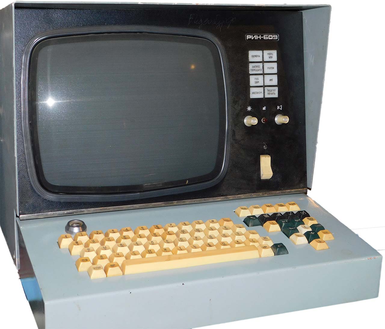РИН-609 — советский векторный терминал. Терминал — это устройство, с помощью которого можно осуществлять обмен данными оператора с ЭВМ. Терминал выступает интерфейсом для человека, мы набираем данные на клавиатуре, а терминал отображает данные с ЭВМ, либо введенные нами.
