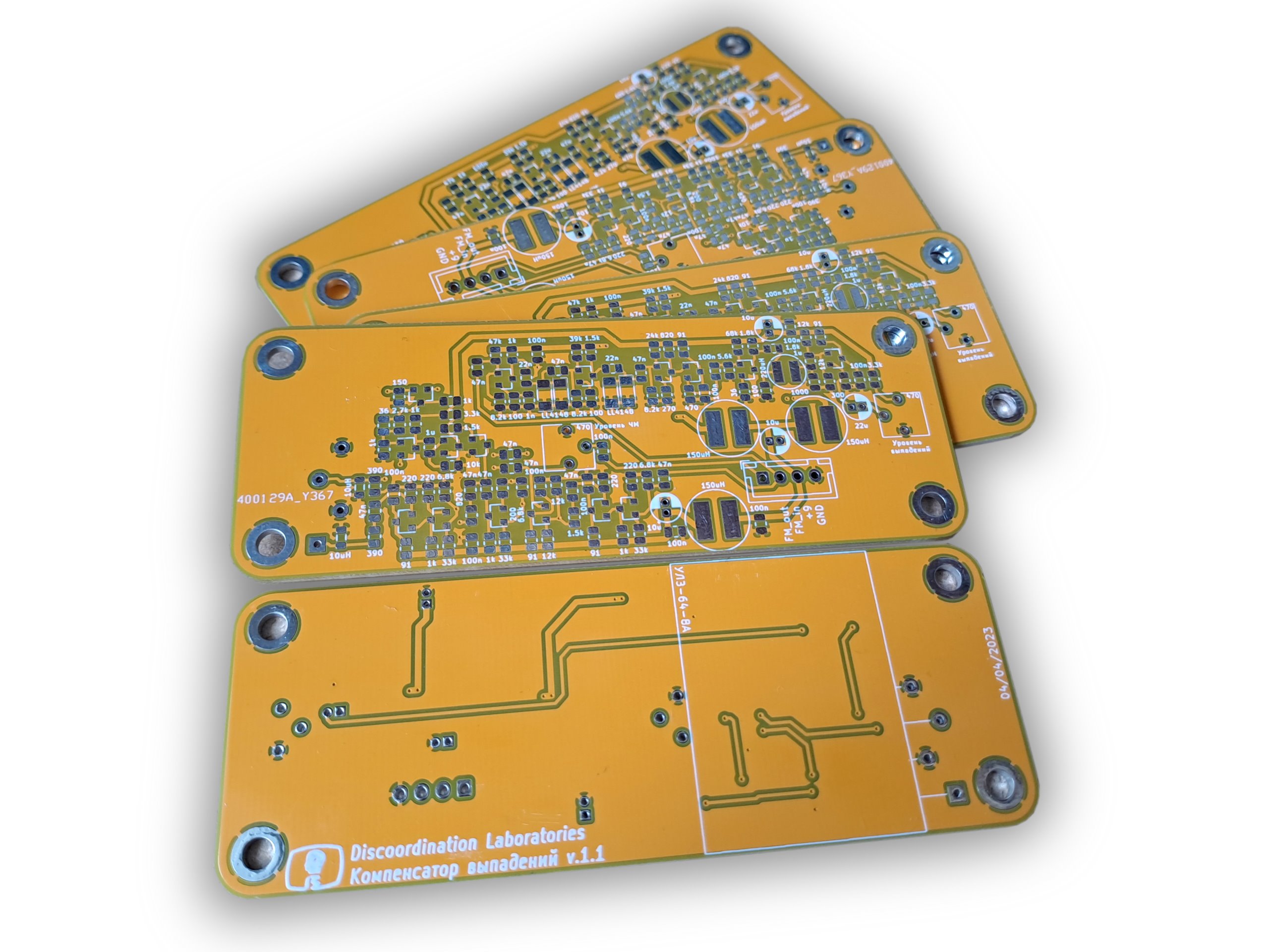 Печатные платы были заказаны в Китае на производстве. Они были изготовлены желтого цвета.