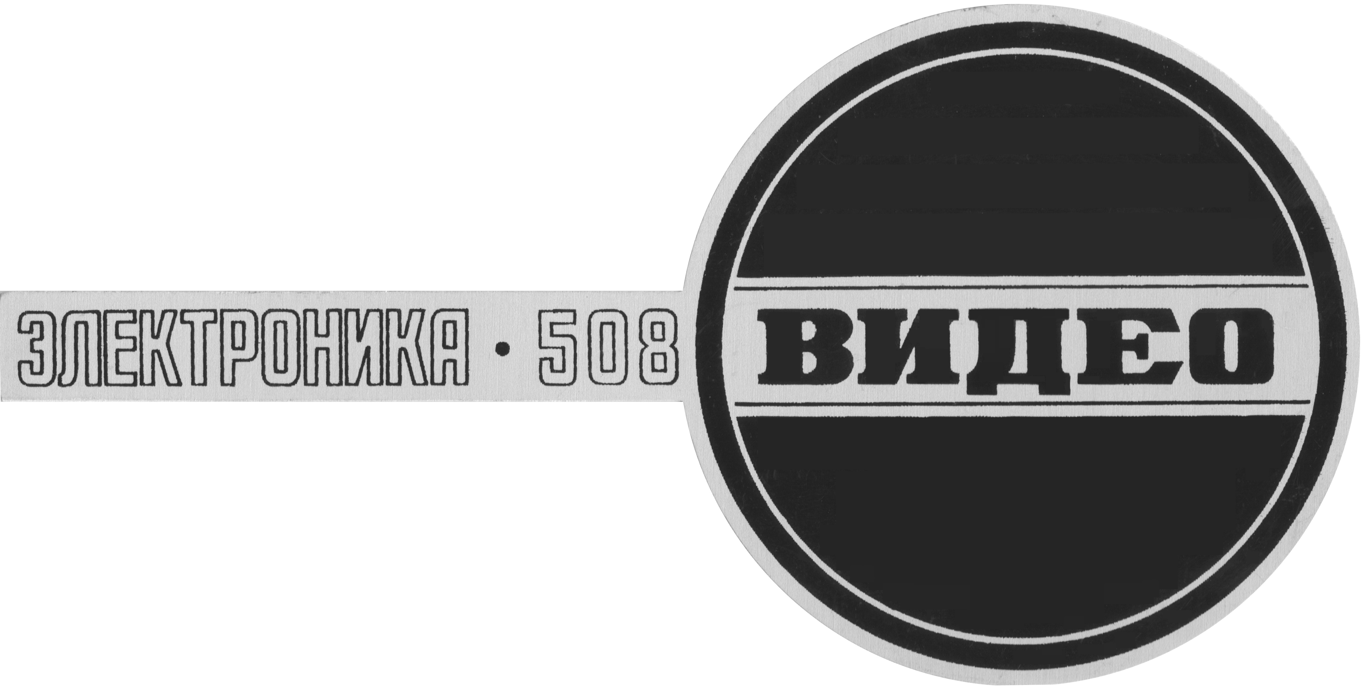 Данный шильдик устанавливается спереди видеомагнитофона Электроника 508М. Однако, аналогичные шильдики также были и у Электроники 502 и 508. Сам шильдик пластмассовый, но состоит из двух надписей: модель видеомагнитофона и слово "видео".