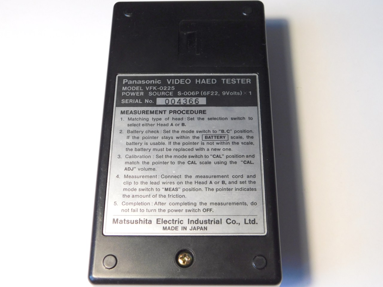 Panasonic VFK-0225 — прибор для проверки видеоголовок (Video Head Tester). Прибор предназначается для оценки состояния видеоголовок с помощью измерения их индуктивности. Прибором нельзя узнать точную величину индуктивности, он только дает сравнительную оценку.
