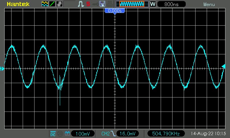 Измеряя форму сигнала на щупах прибора, можно увидеть синусоидальный сигнал частотой 535 кГц и амплитудой около 300 мВ. Частота не стабилизирована каким-либо кварцем и, скорее всего, получается посредством LC-генератора. Странно, что выбрали такую низкую частоту для измерения параметров видеоголовки, так как в паспортах на видеоголовки индуктивность обычно заявляют при частате 3,8 МГц (середина диапазона ЧМ сигнала в бытовых видеомагнитофонах).