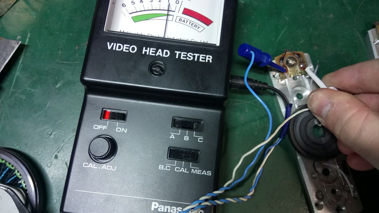 Первыми были проверены обычные VHS-видеоголовки. На опыте подтвердилось, что прибор адекватно определяет "работоспособность" видеоголовки. У целых, но нерабочих, он выдавал показатели около единицы. При оборванной катушке внутри видеоголовки прибор показывает нейтральное положение стрелки (крайнее левое), а при закороченной — полное отклонение до конца шкалы.