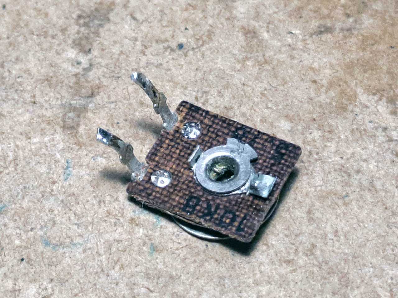 На отломанную ножку была припаяна ножка от случайного резистора, и подстроечник был возвращен в видеомагнитофон. После этого синхронизация по БВГ была починена. Правда, пришлось подогнуть лепесток резистора, так как он плохо контачил.